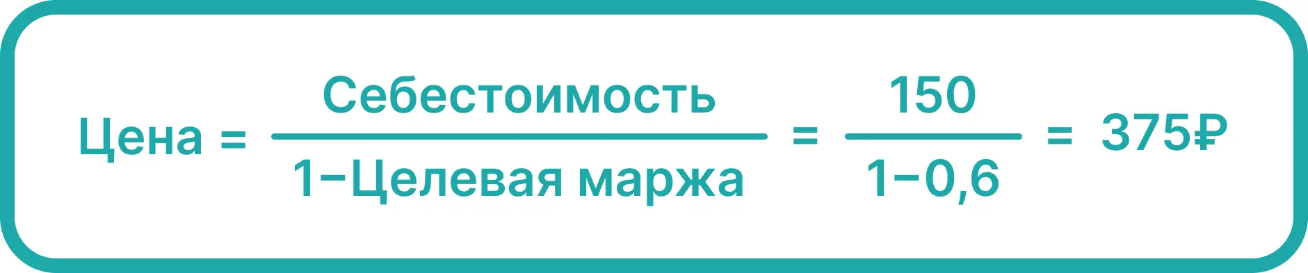 Если ваша целевая маржа — 60%, а себестоимость — 150 ₽, то минимальная цена: