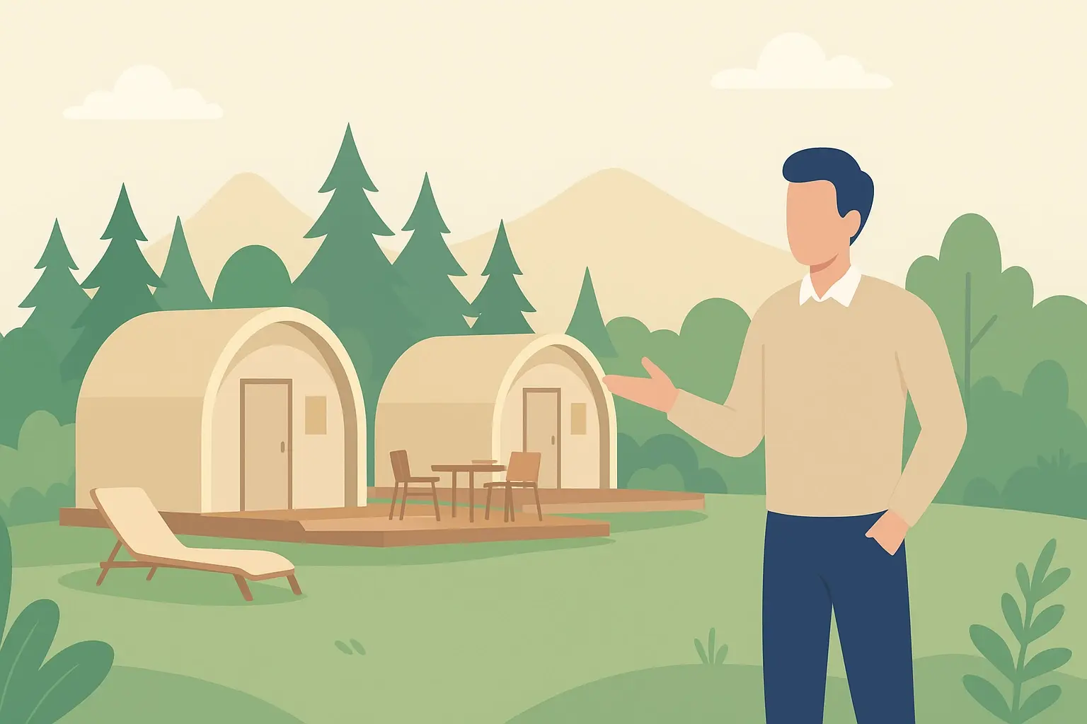 Глэмпинг — формат отдыха «комфорт в природе», который сочетает удобства гостиницы и близость к экологической среде. Для инвестора это проект с высокой добавленной стоимостью: средний чек существенно выше кемпинга, а при грамотной концепции и сервисе — устойчивый спрос у городских туристов и корпоративных клиентов. Дальше — пошаговая структура бизнес-плана, реальные ориентиры по затратам и примеры таблиц ДДС и финплана.